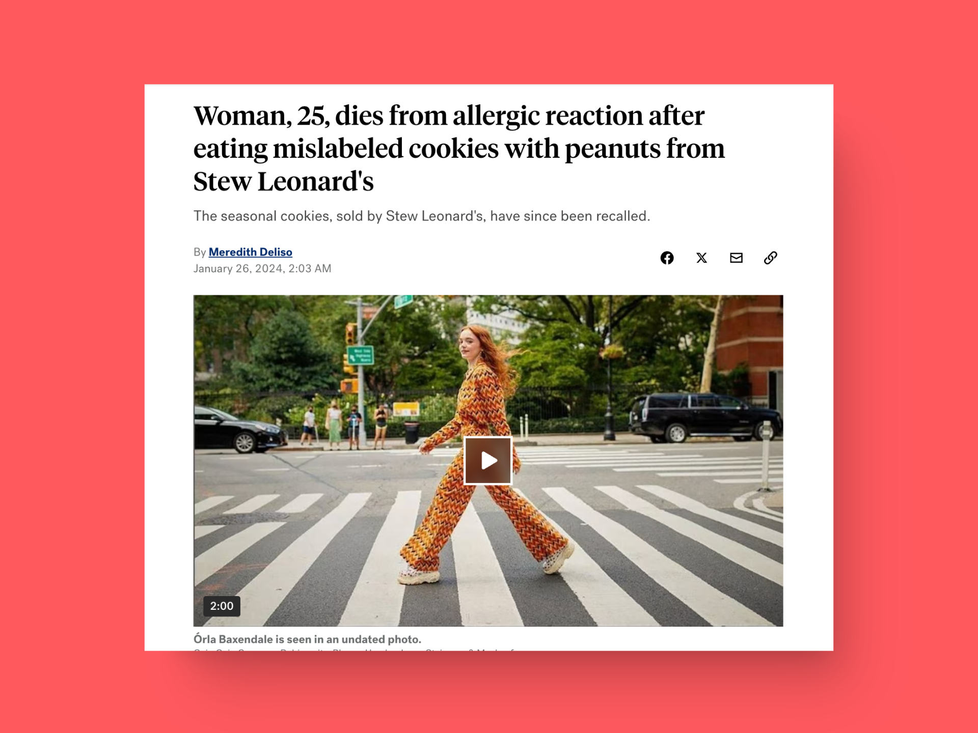 Orla Baxendale, a 25-year-old dancer, died after eating Stew Leonard's cookie that did not mention peanuts as an ingredient. The company faced a lot of criticism and hatred from people on social media—especially on Reddit.