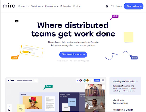 Miro offers three pricing models, including the team ($8 per member per month), Business ($16 per member per month), and Enterprise plans (price shared upon request) to its customers.