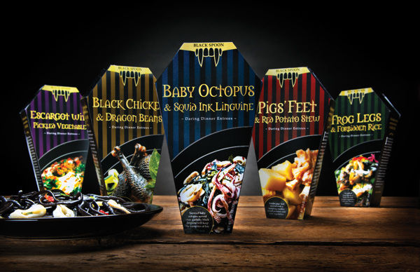 This creepy series of Halloween food packaging by Gina Moyer targets an audience with a taste for the darker side of life. Each of the products is presented with a name and a picture that makes it seem a little squirm-worthy.