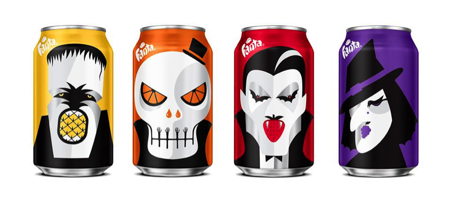 Each year Fanta likes to dress up for Halloween. Their Halloween themed can designs that are both colorful and spooky.