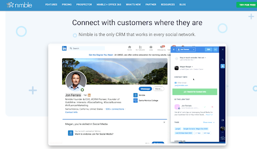 within client management software; social media also plays a role. With Nimble Prospector, prospective leads' contact information is captured. You can reduce your time spent on data entry by hovering over the LinkedIn or Instagram profile of a professional you want to contact.