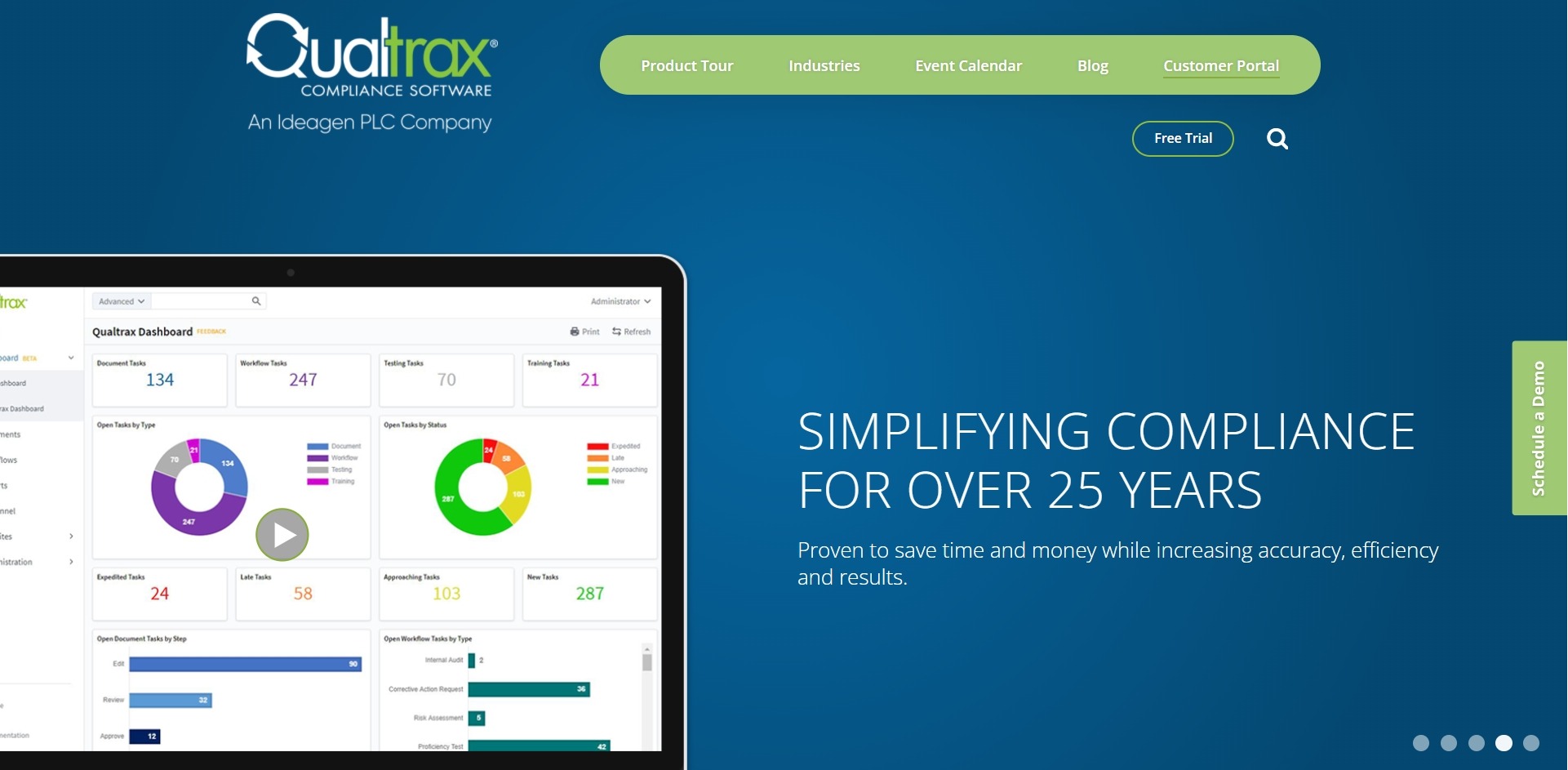 Qualtrax is another compliance tracking software that helps businesses to regulate important standards. The platform is even better for large organizations with various regulations to follow and maintain.