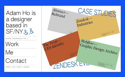 The idea also applies to making your areas of expertise clear through your design, like in this portfolio design by Adam Ho. One can instantly tell the type of work the creator does and what is to be expected from their services.