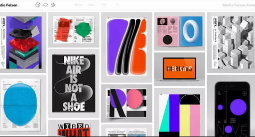 Honestly, there is no right amount of work regarding portfolio designs. In this sense, Studio Feixen is one of the best design portfolio examples. The home page showcases too many design tiles at once, making it look cohesive and creative.