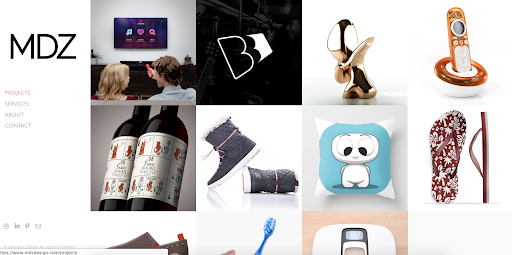 If your work is purely digital, adding links to your portfolio is enough proof; however, if your design portfolio includes packaging designs, product designs, or magazine designs, it's better to show the physical form of your work to make an impact, like MDZ design on their portfolio.