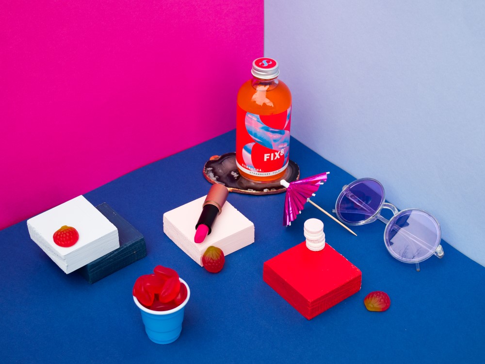 So, instead, we chose to focus on the feeling associated with drinking kombucha; the buzz. The live cultures and unique fermented taste are commonly known to refresh, rejuvenate and create a buzz for the consumer. FIX8 reflects this outcome in every drip of the brand: its vibrant colour pallet, direct tone of voice and graphic, and layered imagery to evoke an obsessive, addictive feel.