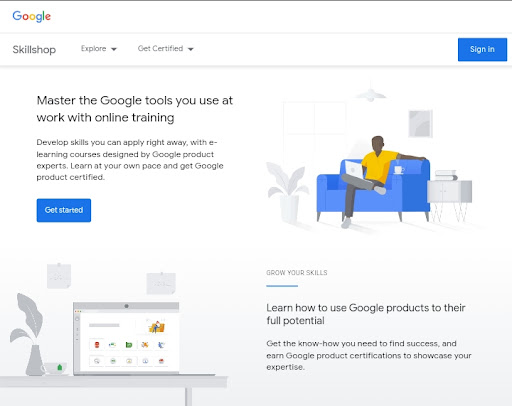 Google Skillshop is an online training platform that educates you on various marketing tools, including Google ads, Google Analytics, Youtube, etc.