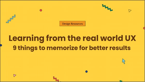 Design Resources Learning from the real world UX: 9 things to memorize for better results 3 years ago • 9 min read