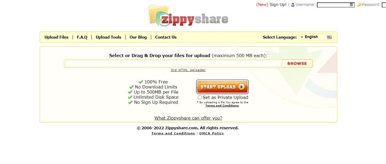 Zippyshare is a free file-sharing website that efficiently offers users unlimited disk space without making an account for it. While Zippyshare does not have an intuitive interface like other tools mentioned on the list, it has still earned its spot for several features, such as leaving no restrictions on the upload and download limits. You can share these files through email, links, or even social media.