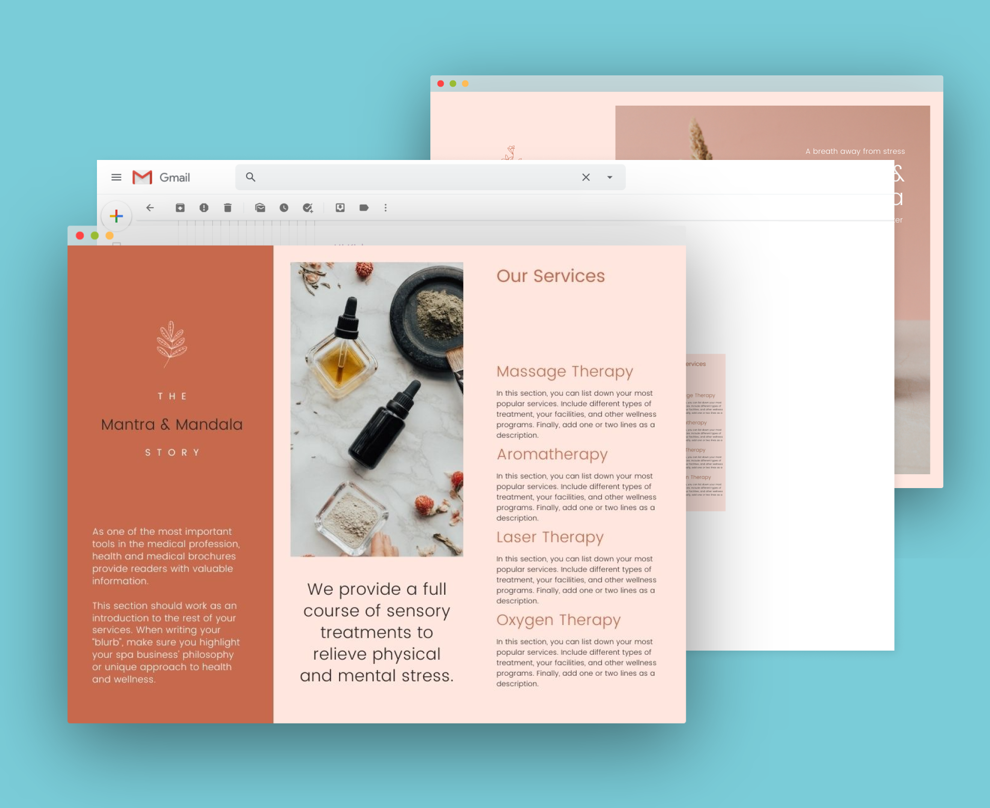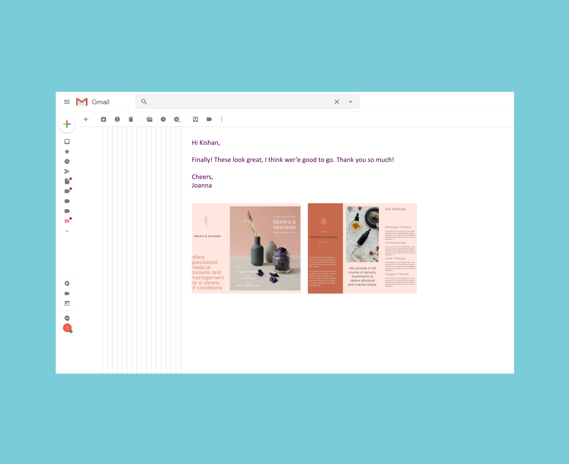 Let’s say, it’s a brochure for my friend Joanna’s new wellness centre. So, I’ve sat down on a call (because it’s 2020, social distancing!) with Joanna to discuss her design ideas and requirements for the brochure.